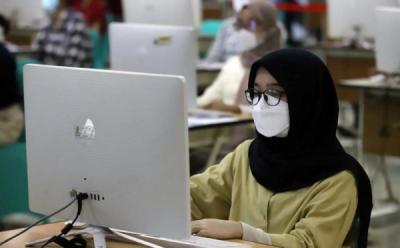 Potret Peserta Pakai Face Shield saat Mengikuti UTBK