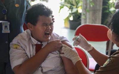Ekspresi Siswa Sekolah Dasar saat Akan Disuntik Imunisasi