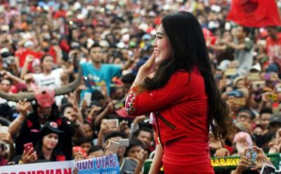 Aksi Penyanyi Via Vallen Hibur Peserta Jalan Sehat PDIP di Surabaya
