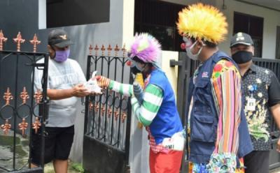 Jelang Penerapan PSBB Kota Tangerang, Badut Bagi-Bagi Covid Kit