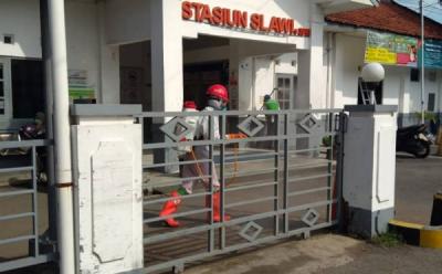 Giat Penyemprotan Disinfektan di Lingkungan Stasiun Slawi