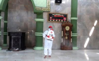 Cegah Penyebaran Covid-19, Masjid Agung Kabupaten Tegal Disemprot Disinfektan