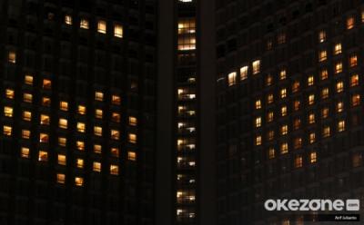Lampu Kamar Hotel di Kawasan Bundaran HI Membentuk Simbol Cinta