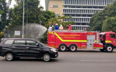 Penyemprotan Disinfektan di Jalan Hayam Wuruk dan Gajah Mada