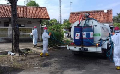 Pasukan Putih Semprot Pasar Desa Eks Terminal Bus Prembun dengan Disinfektan