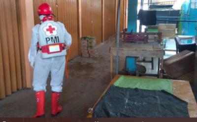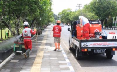 Relawan PMI Semprot Terminal Yomani Tegal dengan Disinfektan