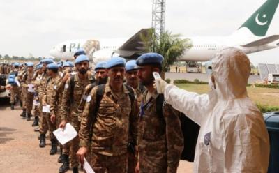 Cegah Covid-19, Prajurit TNI Cek Suhu Tubuh Tentara Pakistan
