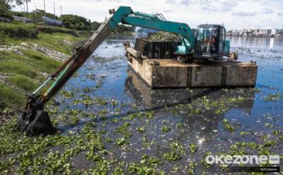 Bikin Dangkal Waduk Pluit, Eceng Gondok Ini Dibersihkan