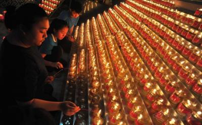 Penyalaan Api Pelita Waisak di Vihara Buddha Dharma Kuta Bali