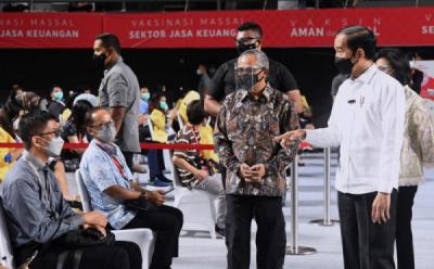 Presiden Jokowi Tinjau Vaksinasi Pelaku Jasa Keuangan di Tenis Indoor Senayan