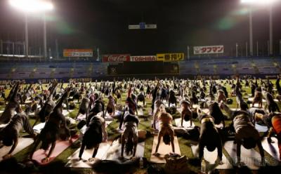 Malam-Malam Ratusan Orang Penuhi Stadion Bisbol demi Berlatih Yoga