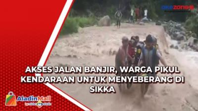 Akses Jalan Banjir, Warga Pikul Kendaraan untuk Menyeberang di Sikka
