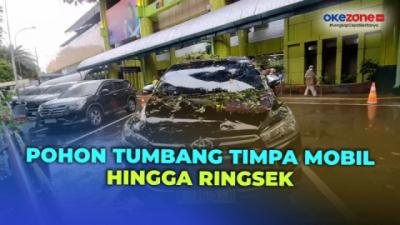 Pohon Tumbang Timpa Mobil hingga Ringsek di Depan Stasiun Gambir
