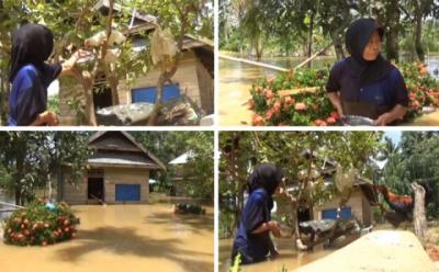 Saking Cintanya ke Ayam, Ibu-Ibu Ini Enggan Mengungsi meski Dikepung Banjir