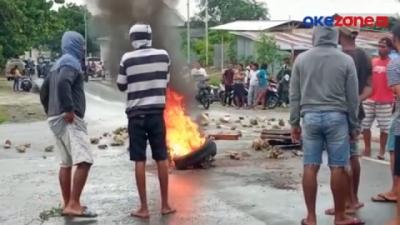 Tidak Puas Dengan Respon Aparat Kepolisian, Massa Bakar Ban