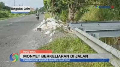 Kawanan Monyet Berkeliaran di Jalan, Ganggu Pengguna Jalan