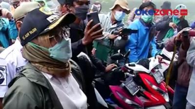 Viral! Pemilik Motor Menahan Motornya dari Derasnya Banjir Bandang