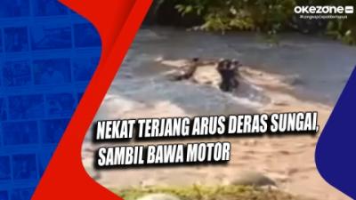 Nekat Terjang Arus Deras Sungai, Sambil Bawa Motor
