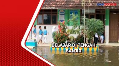 UTS Mendekat, Aktivitas Belajar di SD Lamongan Tetap Berjalan meski Banjir