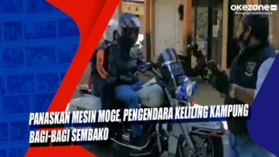 Panaskan Mesin Moge, Pengendara Keliling Kampung Bagi-Bagi Sembako