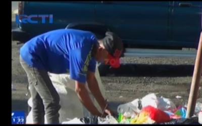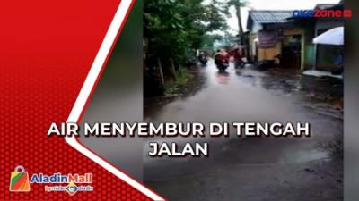 Warga Heran Air Menyembur di Tengah Jalan Bantargebang