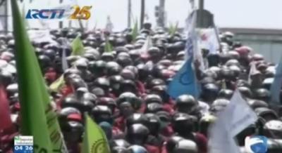 Oknum Buruh Tendang Satpol PP saat Unjuk Rasa Kenaikan UMK di Surabaya