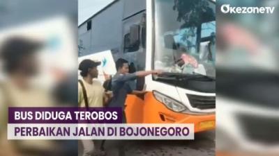 Puluhan Warga Kejar Bus Diduga Terobos Perbaikan Jalan di Bojonegoro