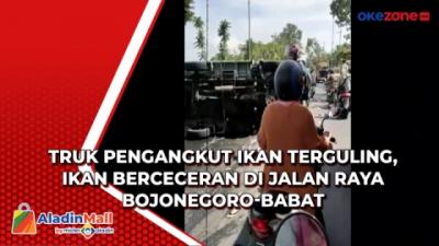 Truk Pengangkut Ikan Terguling, Ikan Berceceran di Jalan Raya Bojonegoro-Babat