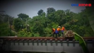 Viral! Petugas Kebersihan Rel Kereta Api Buang Sampah ke Sungai