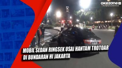 Mobil Sedan Ringsek usai Hantam Trotoar di Bundaran HI Jakarta