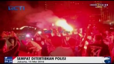 Polisi Tertibkan Suporter Sepakbola di Bunderan HI