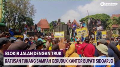 Blokir Jalan dengan Truk, Ratusan Tukang Sampah Geruduk Kantor Bupati Sidoarjo