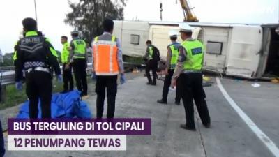 Hilang Kendali Bus Terbalik di Tol Cipali, 12 Penumpang Tewas