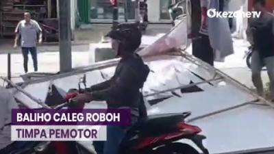 Baliho Caleg di Cakung Roboh Timpa Pemotor