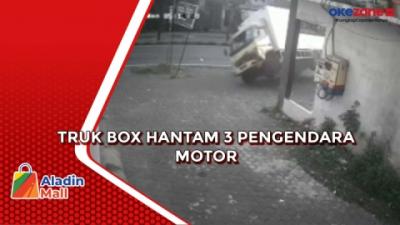 Truk Box Hantam 3 Pengendara Motor dan Papan Reklame di Pasuruan, Jawa Timur