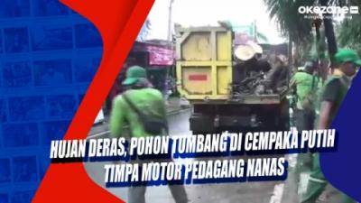 Hujan Deras, Pohon Tumbang di Cempaka Putih Timpa Motor Pedagang Nanas