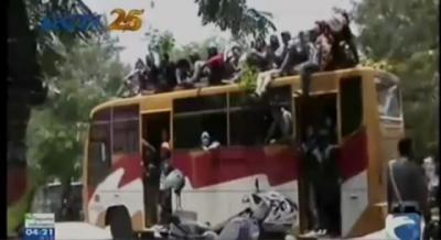 Polisi dan Mahasiswa Berebut Ban Bekas