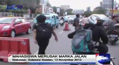Protes Aksi Represif Aparat, Mahasiswa Rusak Marka Jalan