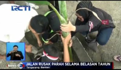 Belasan tahun Jalan Rusak, Warga Tangerang Tanam Pohon Pisang di Tengah jalan