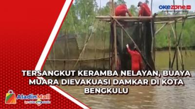 Tersangkut Keramba Nelayan, Buaya Muara Dievakuasi Damkar di Kota Bengkulu