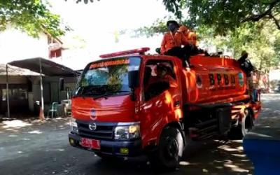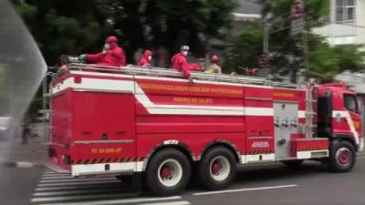 Petugas Damkar Sterilisasi Permukiman Padat Penduduk di Sawah Besar