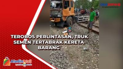 Terobos Perlintasan, Truk Semen Tertabrak Kereta Barang