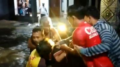 Dramatis, Evakuasi Nenek yang Rumahnya Terjebak Banjir di Madiun