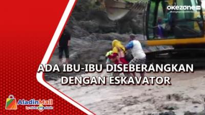 Terjebak Banjir Lahar Gunung Semeru, Ibu-ibu dan Balita Diangkut dengan Eskavator