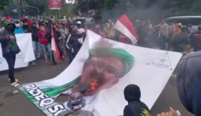 Massa Bakar Poster Habib Rizieq di Depan DPRD Jabar