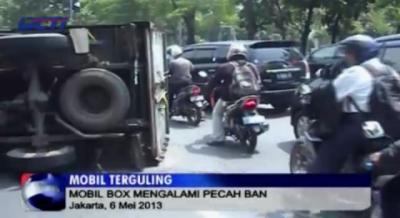 Mobil Box Terguling di Gambir