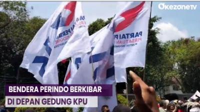 Sambut Ganjar-Mahfud MD, Bendera Perindo Berkibar di Depan Gedung KPU