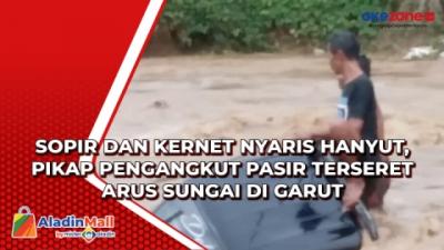 Sopir dan Kernet Nyaris Hanyut, Pikap Pengangkut Pasir Terseret Arus Sungai di Garut