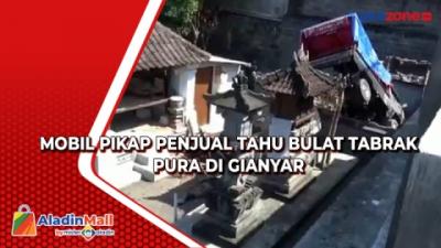 Mobil Pikap Penjual Tahu Bulat Tabrak Pura di Gianyar