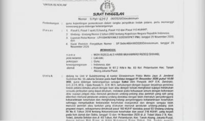 Polda Metro Kirim Surat Panggilan Penyidikan Rizieq Shihab